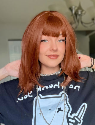 I am in love! This is my first wig from Hazell but definitely won't be my last. It is the color of red that I died my hair for years, so I feel right at home. I had a professional cut the bangs and add a little face framing so it looks more natural on me. I also added a comb to the back of the cap to stop it from riding up. This has become my everyday hair now!