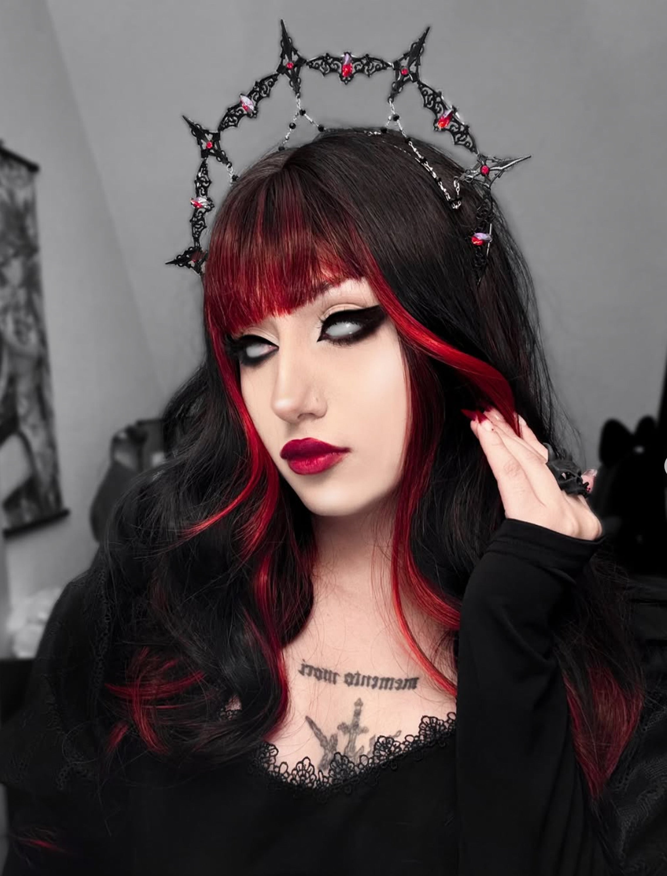 Achieve a bold and striking look with Void, our stunning black and red Wig. This expertly crafted wig features a unique color combination that is sure to make a statement. Perfect for cosplay events, Halloween costumes, or simply for adding a touch of edge to your everyday style!