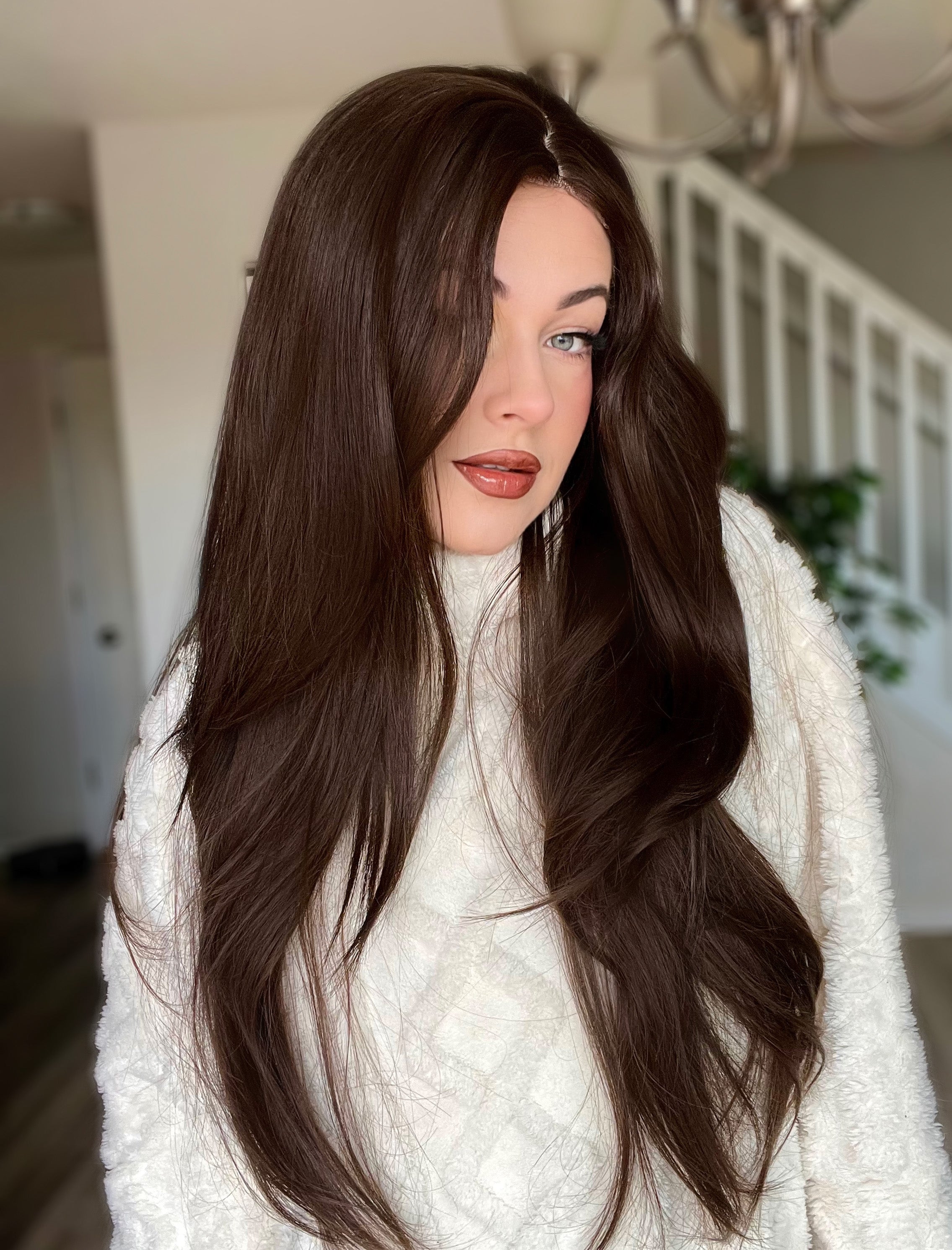This small lace wig in rich brown delivers a natural hairline and seamless blend, ideal for those seeking a lightweight, versatile style that complements various skin tones.